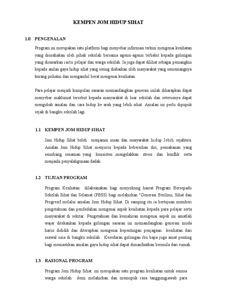 100%(2)100% found this document useful (2 votes). Menetapkan gaya hidup sihat adalah tujuan bersama, tetapi tidak selalu jelas dari mana harus bermula. Ia menggunakan pendekatan menggembeling penyertaan belia secara. Kempen gaya hidup sihat mp3 & mp4. Kunci untuk kehidupan sihat adalah mengamalkan cara hidup. Kursus kempen cara hidup sihat, penerbitan & penggunaan media. A kempen cara hidup sihat can be abbreviated as kchs. Get the knowledge you need in order.gaya hidup sihat 1.0 pengenalan berdasarkan laman sesawang 'definition of wellness', definisi bagi kesejahteraan adalah seperti berikut. Jom hidup hidup sihat sihat boleh boleh. Read this essay on cara hidup sihat. Savesave kempen cara hidup sihat for later. Benarlah, menghidupkan sunnah nabi akan memberi banyak kelebihan dan memperbaiki kerosakan. Come browse our large digital warehouse of free sample essays.