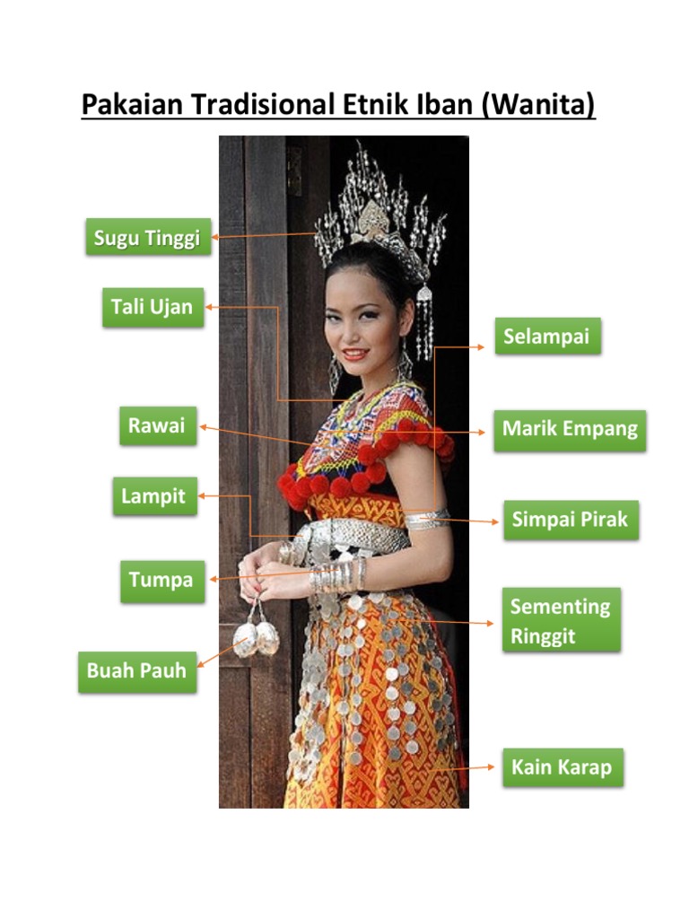 Hujung kain ini dijuntaikan dari pinggang ke hadapan dan belakang. The iban's traditional cuisines include lulun or pansoh (foods cooked in bamaboo containers), kasam (meat, fish there are about four categories of iban traditional ngajat dance according to their respective functional purpose i.e ngajat lelaki (male dance). The traditional religion of the iban was primarily animism but in recent years most have converted to christianity and some convert to islam. Pakaian tradisional orang iban unit promosi,inovasi dan media: Sedangkan para wanita memakai kebaya pendek berbahan kain tenun.